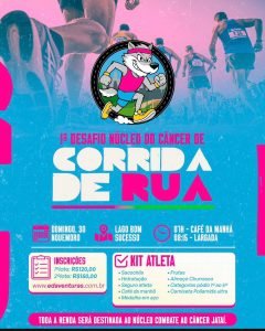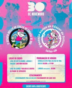O domingo, 30 de novembro, será marcado por propósito, saúde e solidariedade em Jataí com a realização de dois importantes eventos beneficentes: o 1º Desafio de Corrida do Núcleo do Câncer e o 8º Desafio de Ciclismo do Núcleo do Câncer. Unindo atletas, famílias e comunidade, a programação reforça o compromisso social de apoiar pacientes em tratamento do câncer no município.