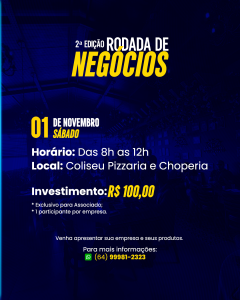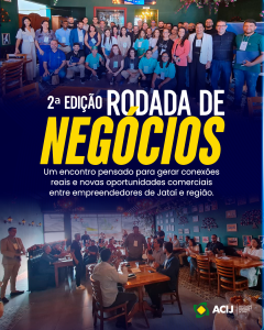 A Associação Comercial e Industrial de Jataí (ACIJ) abriu as inscrições para a 2ª Edição da Rodada de Negócios, um evento voltado à geração de conexões reais e novas oportunidades comerciais entre empreendedores de Jataí e região. A iniciativa acontece no dia 1º de novembro de 2025 (sábado), das 8h às 12h, no Coliseu Pizzaria e Choperia, em Jataí.
