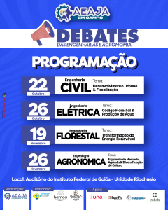 Todos os encontros acontecem no Auditório do IFG – Unidade Riachuelo, em Goiás. A iniciativa promove a troca de conhecimento e experiências entre profissionais e acadêmicos, incentivando soluções inovadoras nas áreas de engenharia e agronomia.