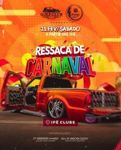 Mesmo após o encerramento oficial do período carnavalesco, a programação festiva continua. No próximo sábado, 21 de fevereiro, será realizada a Ressaca de Carnaval no Ipê Clube, com início marcado para 21h.
