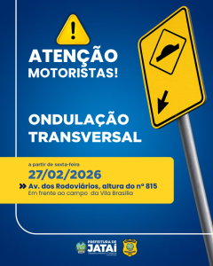 A Prefeitura de Jataí, por meio da Superintendência Municipal de Trânsito (SMT), implantará uma ondulação transversal (quebra-mola) na Avenida dos Rodoviários. A estrutura ficará na altura do nº 815, em frente ao campo da Vila Brasília.