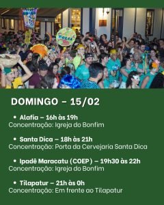 • Santa Dica – das 18h às 21h. Concentração na porta da Cervejaria Santa Dica