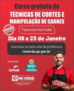 A Prefeitura de Rio Verde abriu inscrições para o Curso gratuito de Técnicas de Cortes e Manipulação de Carnes. A iniciativa busca qualificar pessoas interessadas em ampliar as chances de inserção no mercado de trabalho.
