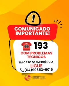 A população de Jataí e cidades da região deve ficar atenta: o número de emergência 193 está temporariamente indisponível. A informação foi divulgada por autoridades locais responsáveis pelo atendimento de ocorrências.