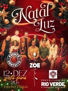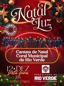 A noite começa às 19h, com a Cantata de Natal do Coral Municipal de Rio Verde. O grupo leva ao público um repertório preparado para destacar a união e a esperança que marcam o período.