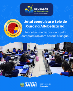 Jataí foi reconhecida com o Selo Nacional Compromisso com a Alfabetização – Categoria Ouro, concedido pelo Ministério da Educação (MEC) às redes de ensino que desenvolvem políticas e ações concretas para garantir que as crianças aprendam a ler e escrever no tempo adequado.