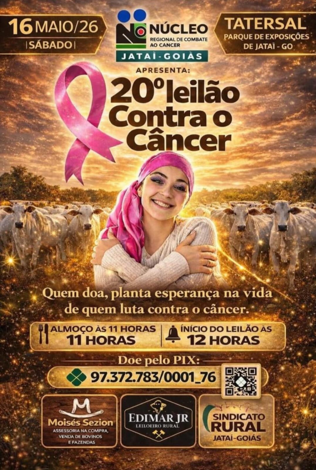 O Núcleo Regional de Combate ao Câncer realiza no dia 16 de maio, um sábado, a 20ª edição do tradicional Leilão Contra o Câncer, em Parque de Exposições de Jataí.