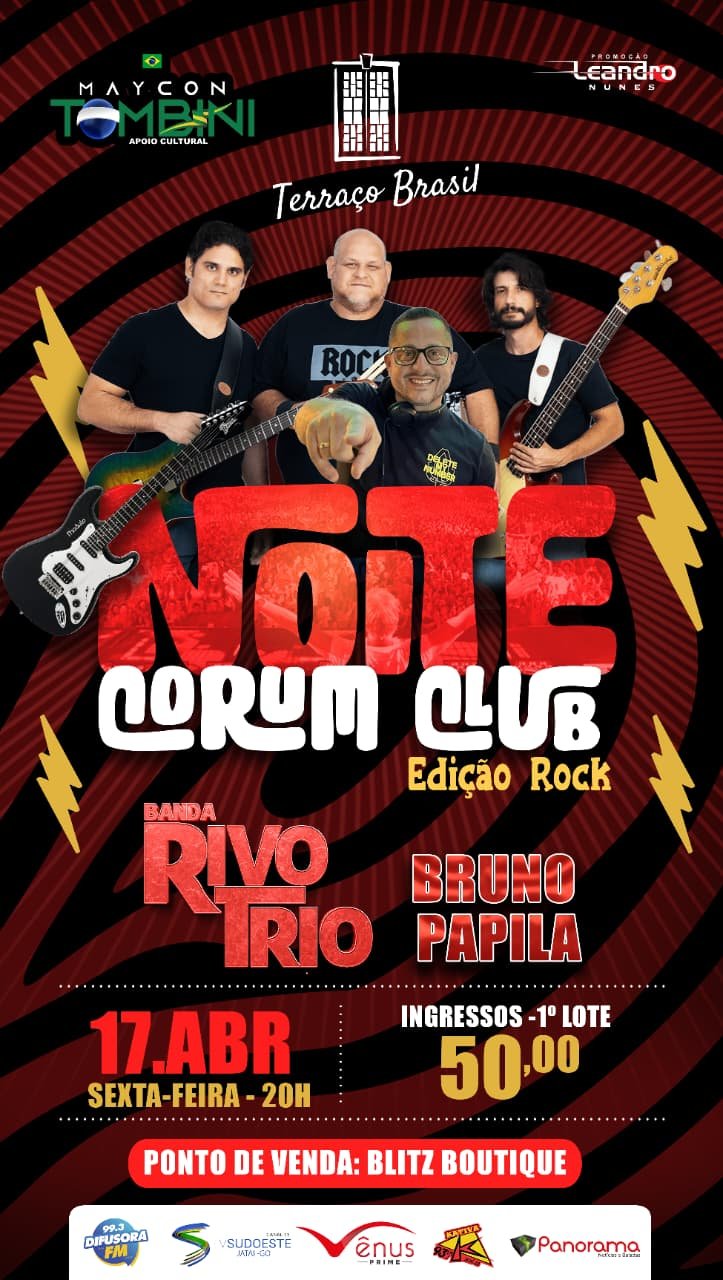 AGENDA | Noite Corum Club – Edição Rock agita Jataí com Banda Rivo Trio e Bruno Papila