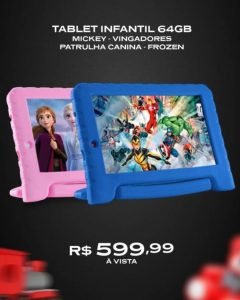 Para o público infantil, a TB1 oferece o Tablet Infantil de 64GB, com versões personalizadas dos personagens Mickey, Vingadores, Patrulha Canina e Frozen, por R$ 599,99 à vista. Já para os pequenos apaixonados por fotografia, a charmosa Câmera Instax Mini 12 é uma ótima escolha, também por R$ 599,99 à vista — perfeita para eternizar momentos com estilo e criatividade.