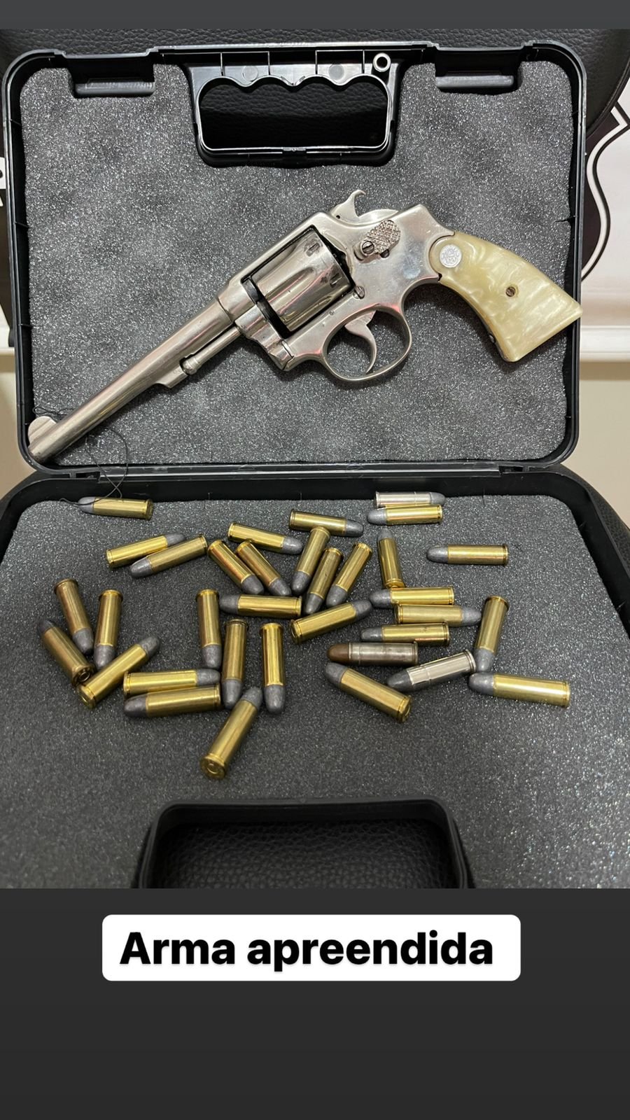 Registre-se, ainda, que durante as buscas na casa do investigado a equipe policial também localizou uma arma de fogo e munições, sem registro, sendo que JEAN CARLOS também foi autuado em flagrante pelo crime do art. 12 da Lei de Armas.