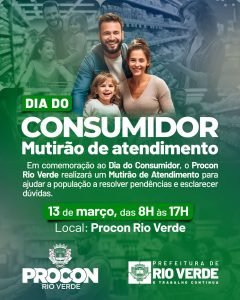 O Procon de Rio Verde realizará um mutirão de atendimento nesta sexta-feira, 13 de março. A ação celebra o Dia do Consumidor. O objetivo é ajudar a população a resolver pendências, negociar débitos e esclarecer dúvidas sobre relações de consumo.